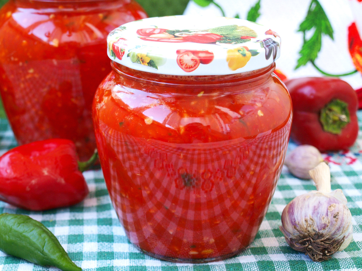 Этот рецепт отлично подходит для тех, кто не хочет тратить время на длительные процессы заготовки, но мечтает о наличии универсальной остренькой приправы зимой. Особенно актуально для тех, у кого есть излишки сладкого перца с огорода – всего за пару часов можно утилизировать килограмм или два без необходимости включать плиту.
