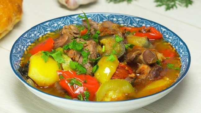 Подготовка — это первый и важнейший шаг. Мясо следует тщательно промыть, обсушить и нарезать крупными кусками, а затем приправить. Овощи также нужно очистить и нарезать: картофель — дольками, морковь — кружками, лук — кольцами, баклажаны и кабачки — крупными частями.