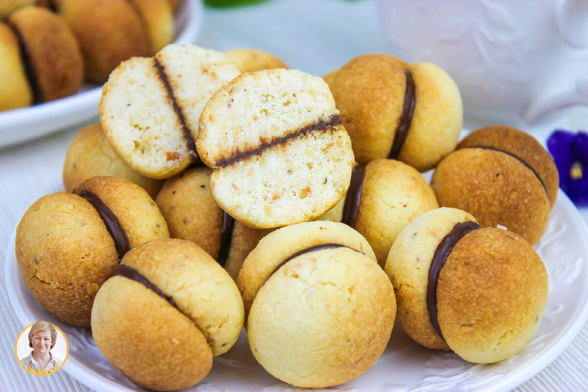 Добавьте в смесь муку и измельченный фундук. Замесите тесто — оно должно быть однородным и мягким. Скатайте небольшие шарики весом около 7-8 граммов и разместите их на противне, предварительно застелив его пергаментом.
