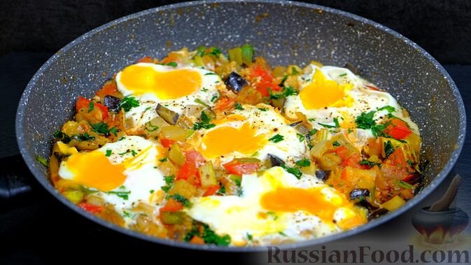 Очаровательная летняя яичница готовится с баклажанами, кабачками и помидорами. Эти овощи обжариваются на сковороде с добавлением лука, а затем к ним приготавливаются яйца. В результате получается блюдо, полное сочности и насыщенности.