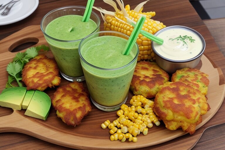 Кукурузные оладьи с авокадо-смузи
