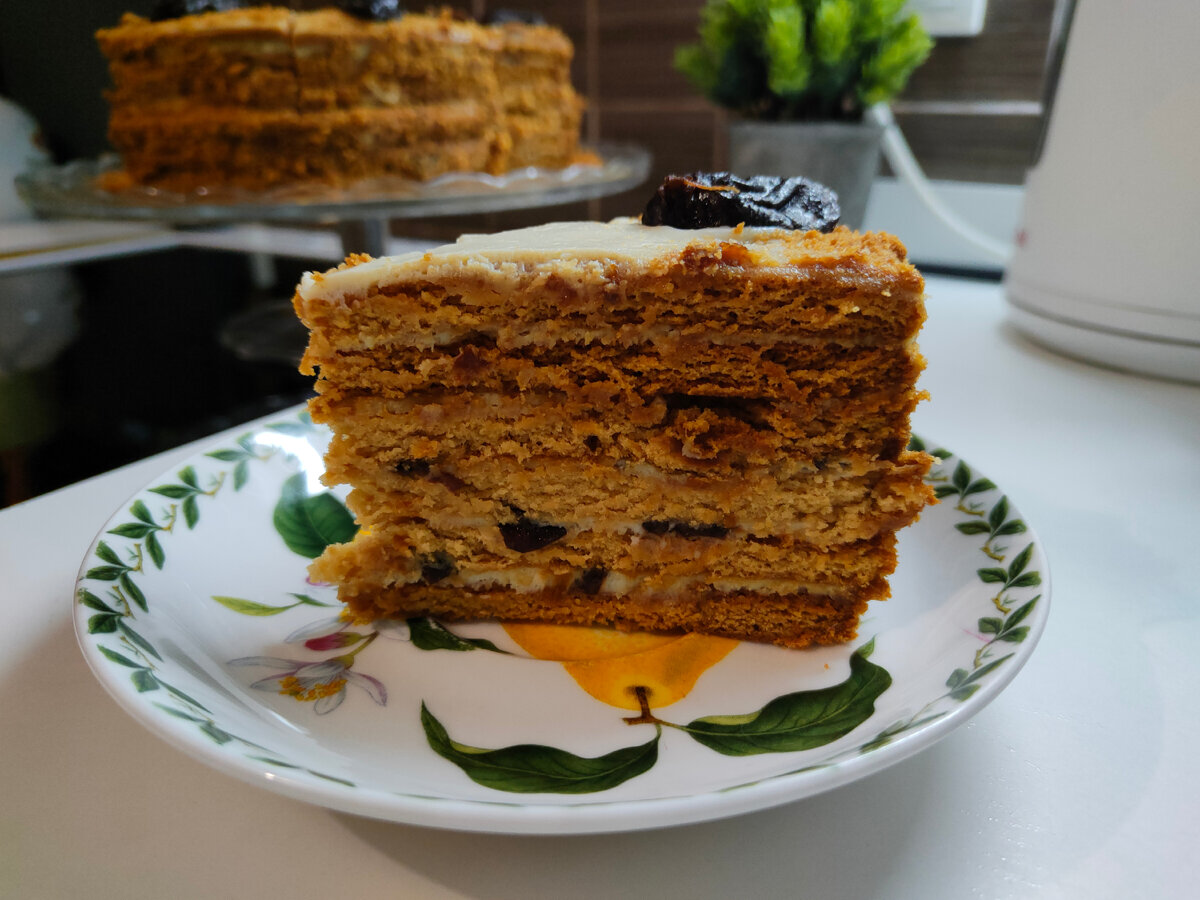 Этот изысканный торт сочетает в себе ароматные медовые коржи и воздушный сметанный крем. Чернослив отлично дополняет классический медовик, внося интересные нотки, которые обязательно удивят и порадуют ваши вкусовые рецепторы.