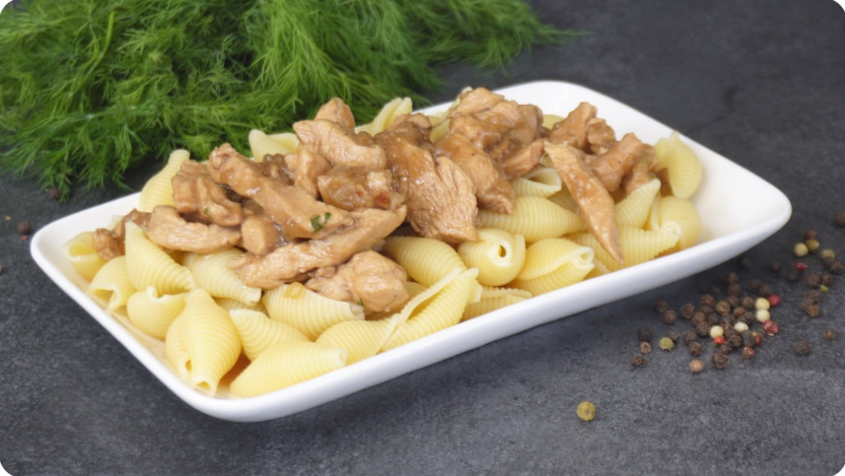 Готовить под крышкой в течение 15 минут. За это время закипятить макароны. В результате получается ароматное и сочное блюдо, которое приятно сочетать с гарниром.