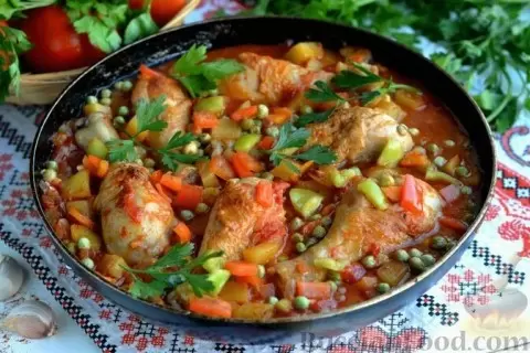 - Ингредиенты: макароны, куриный фарш, баклажан, помидоры, репчатый лук, томатная паста, лавровый лист, растительное масло, соль, молотый чёрный перец, твёрдый сыр, зелень петрушки.