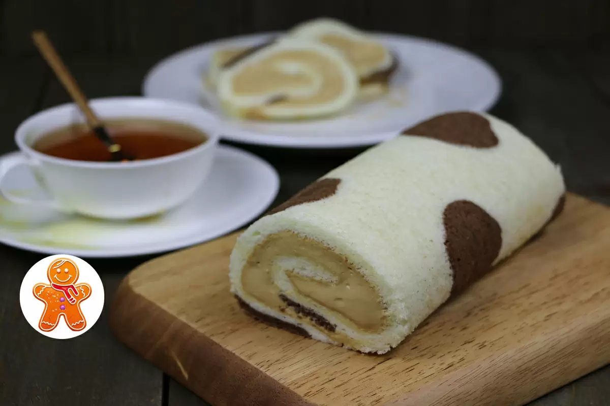 Когда бисквит остынет, его разворачивают, покрывают кремом и снова сворачивают. Конечный штрих — обернуть рулет в пленку и оставить в холодильнике на несколько часов для настаивания и стабилизации крема. Нежный, пористый рулет «Буренка» будет идеальным десертом, который украсит любое чаепитие.