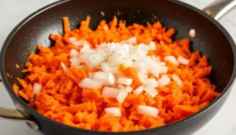 Основная идея заключается в том, чтобы один раз потратить около 30 минут для создания больших порций зажарки из нарезанного лука и моркови, обжаренной до золотистого цвета и мягкости. Готовую массу остужают, фасуют в пакеты и помещают в морозильник.