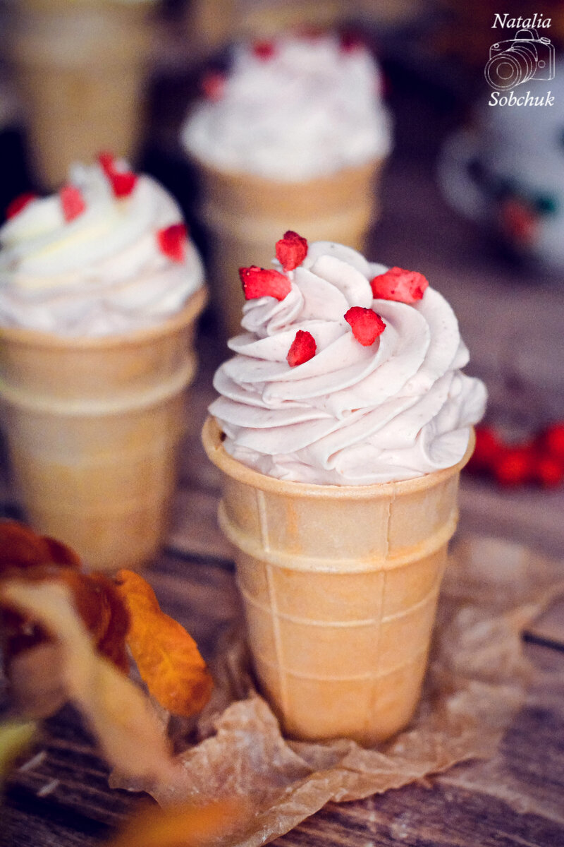 На вершине кулинарного тренда этого года — капкейки, выполненные в вафельных стаканчиках. Этот удивительный десерт напоминает мороженое и мгновенно привлекает взгляды. Из-за своей формы и текстуры его иногда называют нетающим мороженым. Внутри капкейка спрятан нежный ванильный бисквит, ягодное конфи и легкая кремовая шапочка. Приготовить этот десерт не составит труда, и даже начинающий кулинар справится с задачей. Если желание порадовать родных и близких крепче, чем когда-либо, этот рецепт — то, что вам нужно.