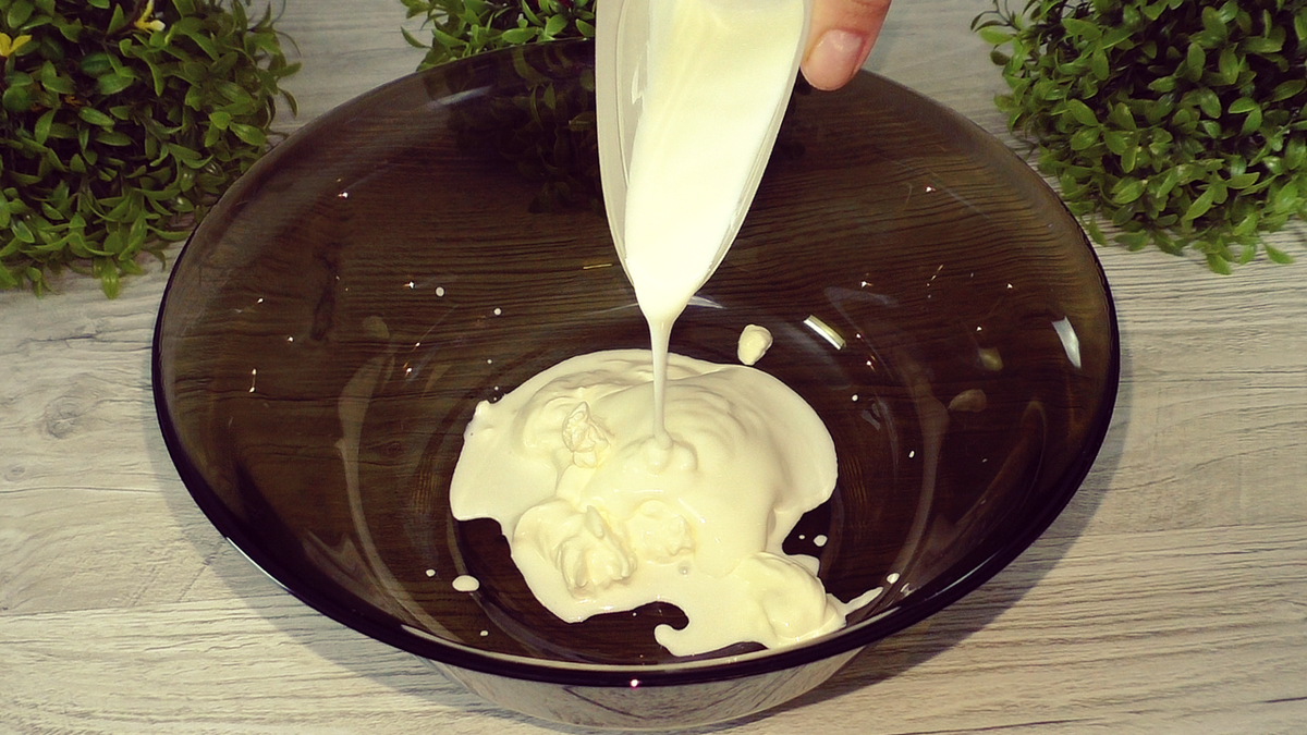 Начинают с того, что в глубокой миске смешивают сметану и кефир. Далее, добавляют щепотку соли вместе с сахаром, а затем и мёд. Если мед густой, его стоит предварительно растопить на водяной бане для удобства смешивания.