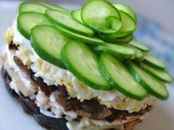 Салат «Меркурий» не только вкусен, но и красив на вид. Его можно украсить тонкими ломтиками огурца или зеленью, чтобы сделать подачу еще более эффектной!