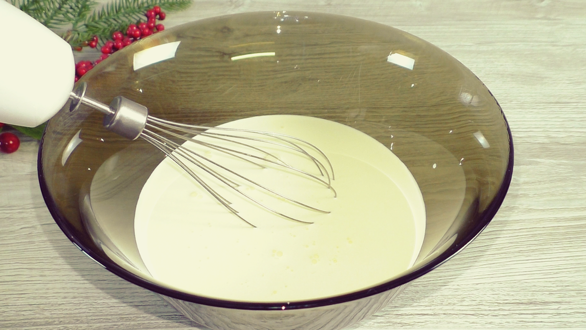 Первым делом холодные сливки нужно вылить в миску и взбивать их венчиком в течение 2-3 минут, пока они не начнут густеть. Как только консистенция станет более плотной, венчик можно заменить на блендер.