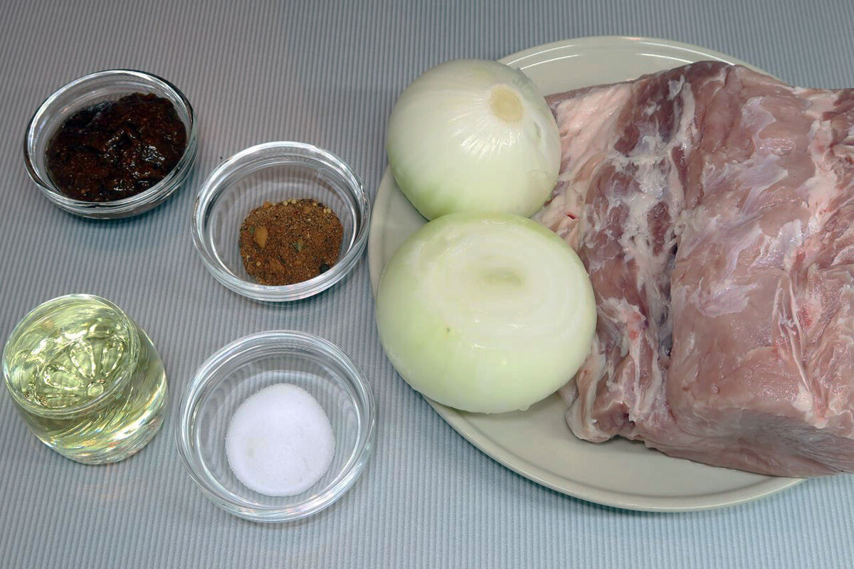 Прежде всего, мясо стоит тщательно промыть и нарезать на крупные куски прямоугольной формы. Чем больше куски, тем более сочным получится шашлык. Для равномерного приготовления важно, чтобы куски были одинаковыми по размеру. Далее, репчатый лук очищается и разрезается на четвертинки, а затем помещается в блендер для измельчения до однородной консистенции.