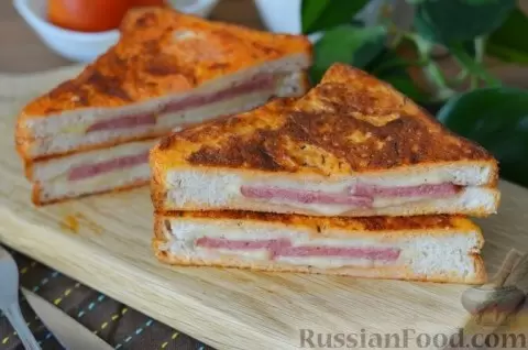 Не забудьте о горячих бутербродах с колбасой и сыром. Спасибо румяной корочке, достигнутой благодаря обжарке в яично-томатном льезоне, они станут отличным вариантом как для завтрака, так и для перекуса.