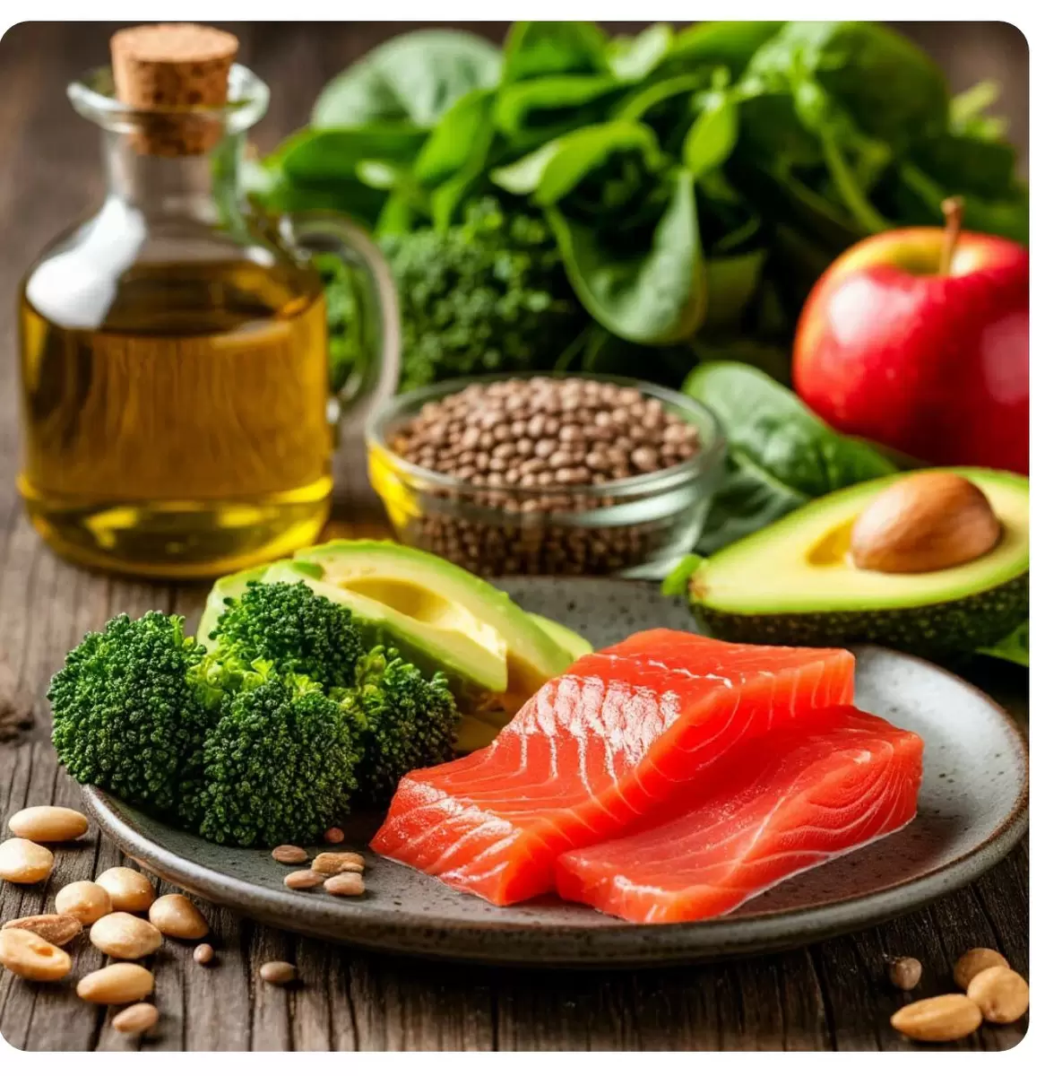 - Оливковое масло: Этот полезный источник мононенасыщенных жиров помогает снизить уровень "плохого" холестерина и повышает уровень "хорошего". Используйте его для заправки салатов и в качестве замены другим жирам.